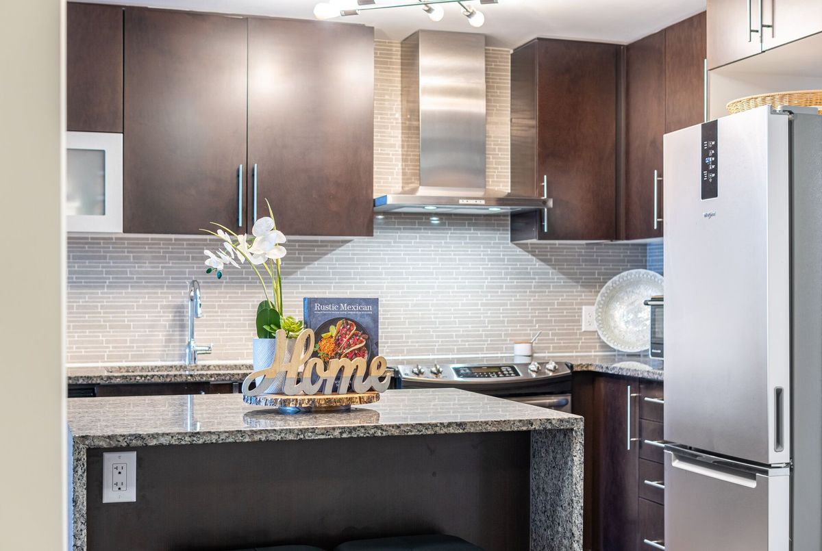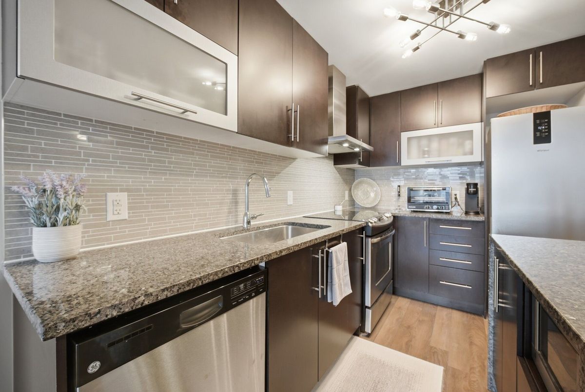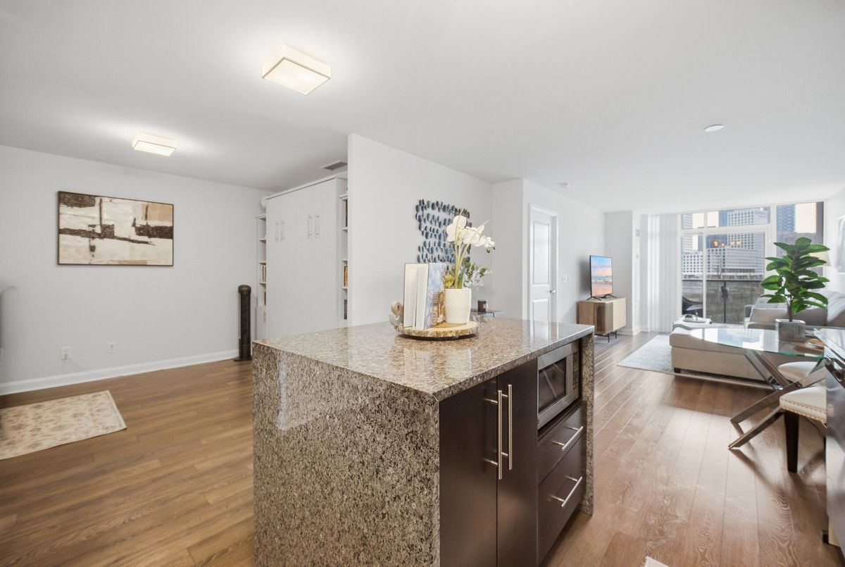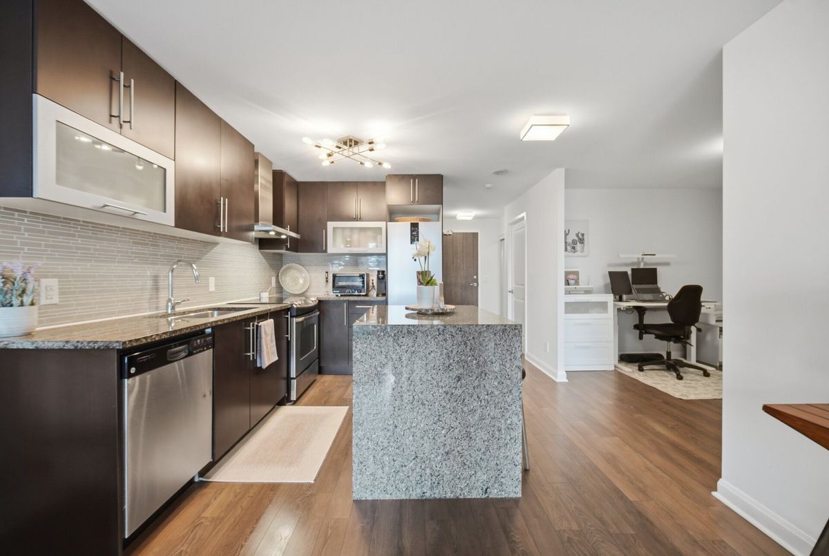 Welcome to this beautiful and spacious 945 sq ft 1+Den, 2 bath suite in the heart of Islington City Centre-a rare offering that includes 2 PARKING SPACES and a locker. Thoughtfully upgraded and designed for modern living, this home is ideal for urban professionals, downsizers, investors or small families seeking comfort, style, and convenience. The chef inspired kitchen features stone countertops, stainless steel appliances, a breakfast bar/ centre island, and abundant storage-perfect for cooking, entertaining, or working from your laptop. The open concept living and dining area offers generous space for relaxation, hosting, or enjoying the unobstructed views from large windows and the private balcony. The primary bedroom is bright and spacious, complete with a walk-in closet, and a private 4 piece ensuite. The versatile den has been transformed with a custom queen size Murphy bed, built in shelving, and a dedicated closet system-making it ideal as a second bedroom/home office. Additional features include Laminate flooring throughout, Oversized ensuite laundry room, with lots of natural light. Residents enjoy exceptional amenities: 24 hour concierge, indoor saltwater pool, sauna, fitness centre, theatre room, party/meeting rooms, games room, and ample visitor parking. Located just steps from Islington Subway Station, minutes to Kipling GO, and close to Hwy 427/QEW, parks, schools, restaurants, cafés, and everyday conveniences. Directly across from the upcoming Etobicoke Civic Centre redevelopment, this location offers unmatched connectivity and long-term value. A truly special unit-don't miss your chance to call it home.